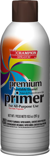 Champion Sprayon® Primers fast-drying enamel primer formula both seals and primes. For interior and exterior use. Adds protection against rust and increases adhesion with color coat. Allows for a smoother, glossier finish.